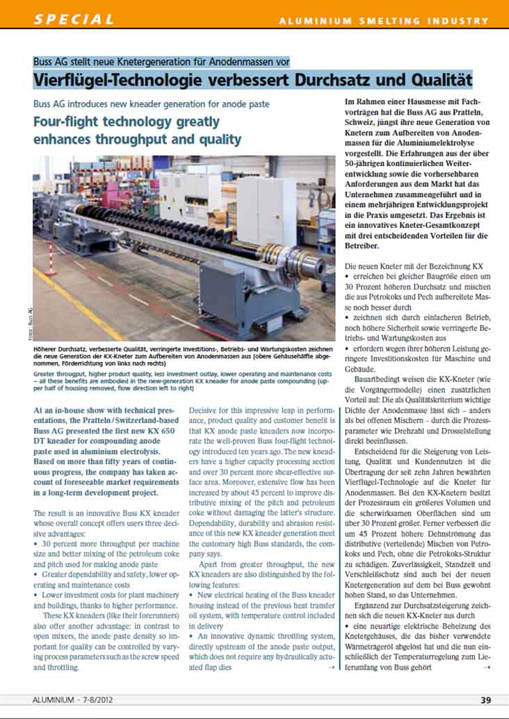 60多年来,布斯 KE 和 CP 系列混捏机一直都是业内阳极糊混捏的模范。而 KX 技术则延续了这一传统的优势:安全、高效、可靠。